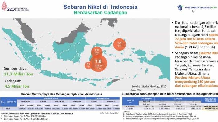 Sebagai salah satu daerah penghasil nikel terbesar di Indonesia, Maluku Utara menjadi daerah incaran para investor, baik dalam maupun luar negeri. Menurut Direktur Perencanaan Manufaktor Badan Koordimasi Penanaman Modal (BKPM), Alma Karma. Di masa depan, mobil listrik akan menjadi primadona. Di mana 30 persen bahan baku utamanya ialah nikel. “Kita ketahui sumber daya nikel nasional sebesar 11,7 miliar ton, sedangkan cadangan biji nikel sebesar 4,5 miliar ton.
